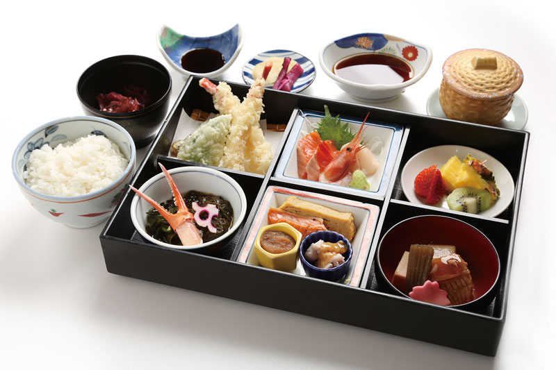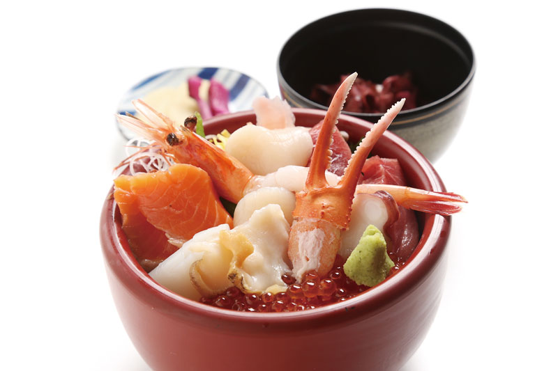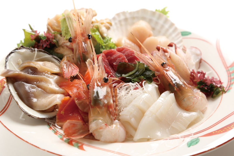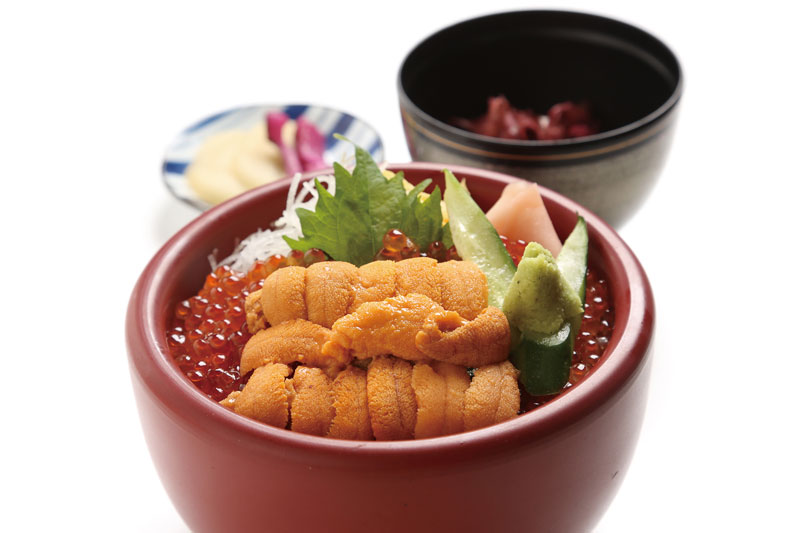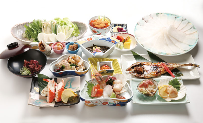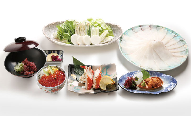 うに刺身(5~9月)/刺身盛合せ(10~5月)、たらば蟹盛り、たこしゃぶ鍋、イクラ丼、香物、吸物